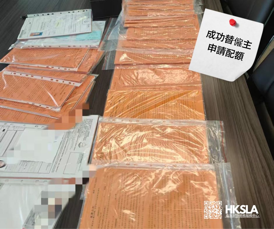 香港對外勞務服務中心 (HONG KONG Supplementary Labour Association) 準備申請表及文件,向勞工處提交外勞配額申請